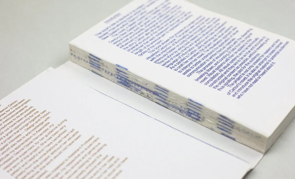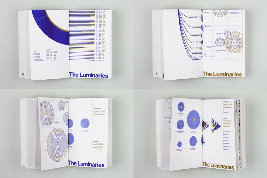 Titled The Luminaries, this was a project conceived with the intention to stretch the boundaries of information design, and to uncover hidden patterns of a written word novel by translating its story into ‘hard’ data (without spoiling the plot).